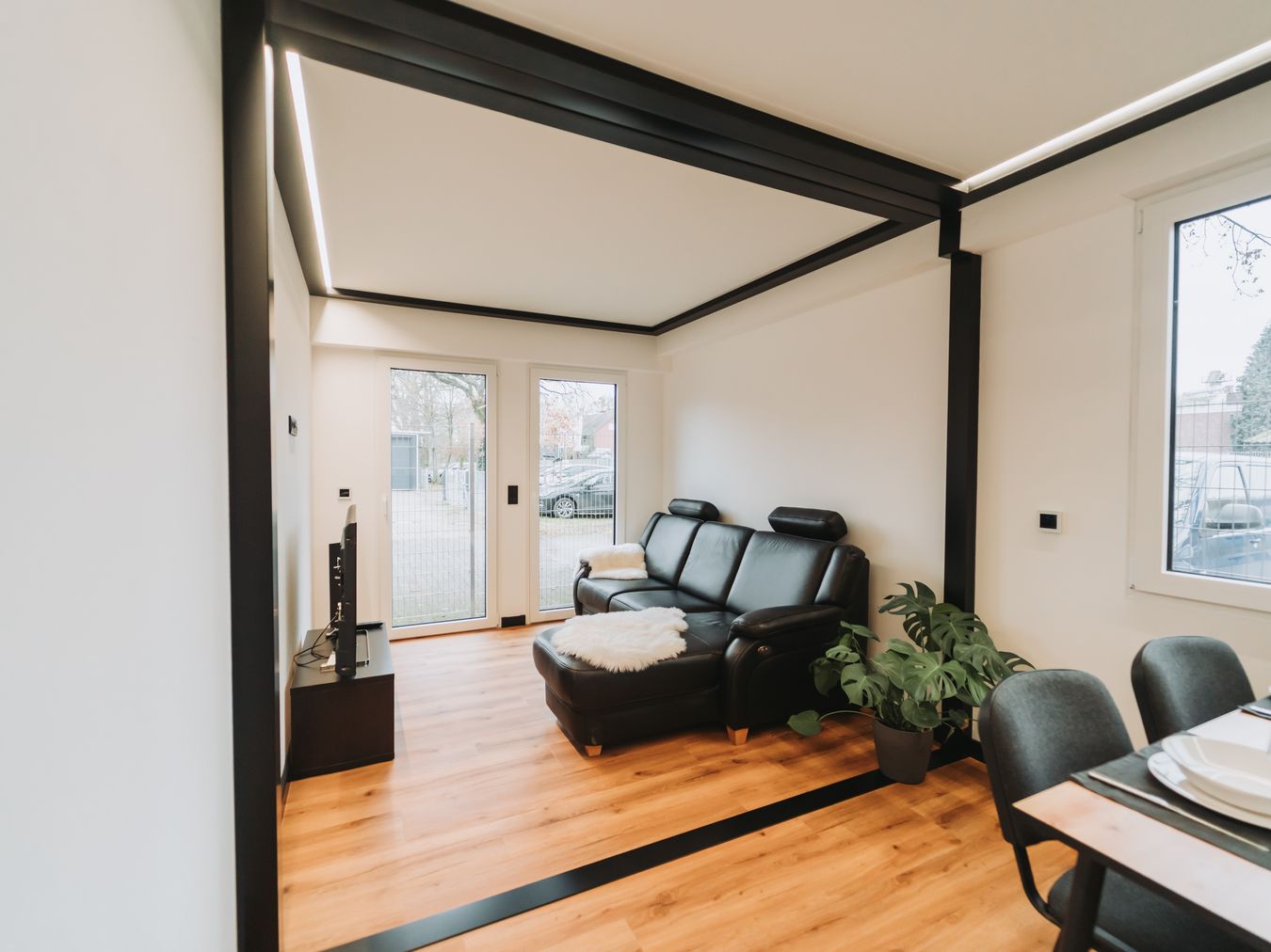 1 Container à 3,00 x 3,00 m: als gemütliches Wohnzimmer gestaltet
